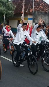 Pasangan Yuro pilih bersepeda menuju Gedung DPRD Karanganyar, Selasa 13 Februari 2018. (credit-Suroto/Fokusjateng.com)
