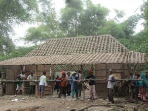 Warga gotong royong mengevakuasi rumah Sarman di Desa Pengkol, Kecamatan Tanon, Sragen, yang terancam longsor Selasa 13 Februari 2018. (credit-Huriyanto/Fokusjateng.com)