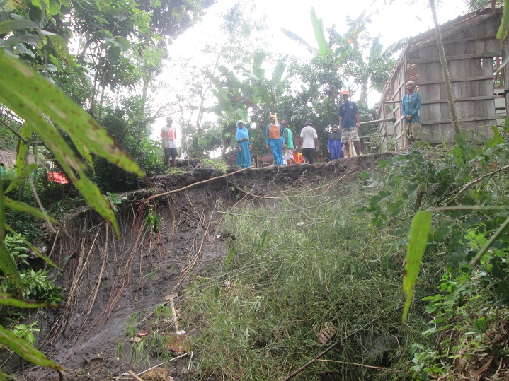 Tidak hanya itu, tanah longsor ini nyaris merobohkan rumah Sarman. Titik longsor hanya tinggal sekitar setengah meter. “Beberapa hari yang lalu sudah terlihat retak dan ambles,” tutur Sarman, ketika ditemui di rumahnya.