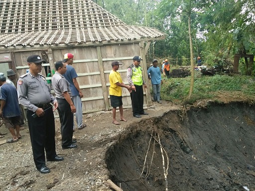FOKUS JATENG-SRAGEN-Badan Penanggulangan Bencana Daerah (BPBD) Sragen langsung bergerak cepat menyikapi longsor di Dusun Bedono, Desa Pengkol, Kecamatan Tanon, Sragen. Tanah longsor dengan lebar 15 meter dan tingginya sekitar 10 meter itu nyaris menyeret satu rumah milik Sarman (56). Sebab, jarak longsoran yang merupakan anak Sungai Bengawan Solo itu dengan rumah hanya sekitar setengah meter.