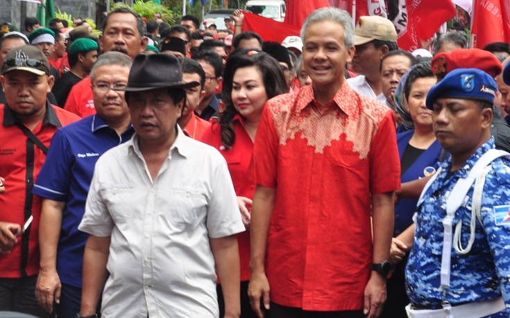 Ganjar Pranowo tiba terlebih dahulu pukul 10.30 WIB langsung dielu-elukan pendukungnya. Didampingi sesepuh PDIP Boyolali Seno Kusumoarjo, langsung dikerubuti massa untuk bersalaman dan swafoto sebelum masuk gedung DPC. Sementara Taj Yasin datang bersama isterinya saat Ketua Badan Pemenangan Pemilu PDIP Seno Samodro melakukan orasi.