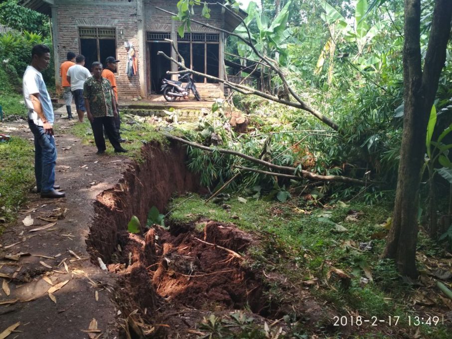 Untuk menghindari hal-hal yang tidak diinginkan, dia dan anggota keluarga mengungsi ke rumah kerabat. Tanah longsor ini hanya berjarak sekitar satu meter dari bangunan rumah. Tanah ambles ke arah Sungai Cemara di samping depan rumah. “Kemungkinan tergerus aliran sungai,” tutur Budi, pemilik rumah.
