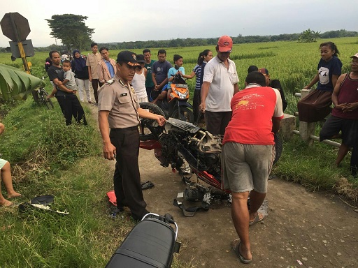 FOKUS JATENG-SRAGEN-Kecelakaan di perlintasan kereta api (KA) tanpa palang pintu di wilayah Sragen kembali terjadi. Kali ini terjadi di Dusun Bangunharjo, Desa/Kecamatan Masaran, Sragen. Yakni sepeda motor Honda Beat bernopol AD 5422 AEE tertabrak KA Logawa.