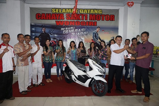 FOKUS JATENG-WONOGIRI-Masyarakat Wonogiri kini sudah bisa memiliki All New Honda PCX 150, sepeda motor keluaran terbaru dari Honda. Secara simbolis, penyerahan perdana dari dealer, dilakukan oleh Indra Provianto, Kepala Cabang PT Cahaya Sakti Motor Wonogiri, kepada Setiawan warga Pokoh, Wonoboyo, Wonogiri, Jumat petang 23 Februari 2018.