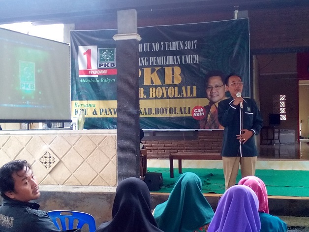 FOKUS JATENG-BOYOLALI-DPC PKB Boyolali menggelar pendidikan politik Minggu 25 Februari 2018. Yakni dikemas dalam diskusi “Bedah UU No 7 Tahun 2017 tentang Pemilu. Dua narasumber yang dihadirkan, yakni Komisioner KPU Boyolali Ali Fachrudin dan anggota Panwaslu Boyolali Rubiyanto.