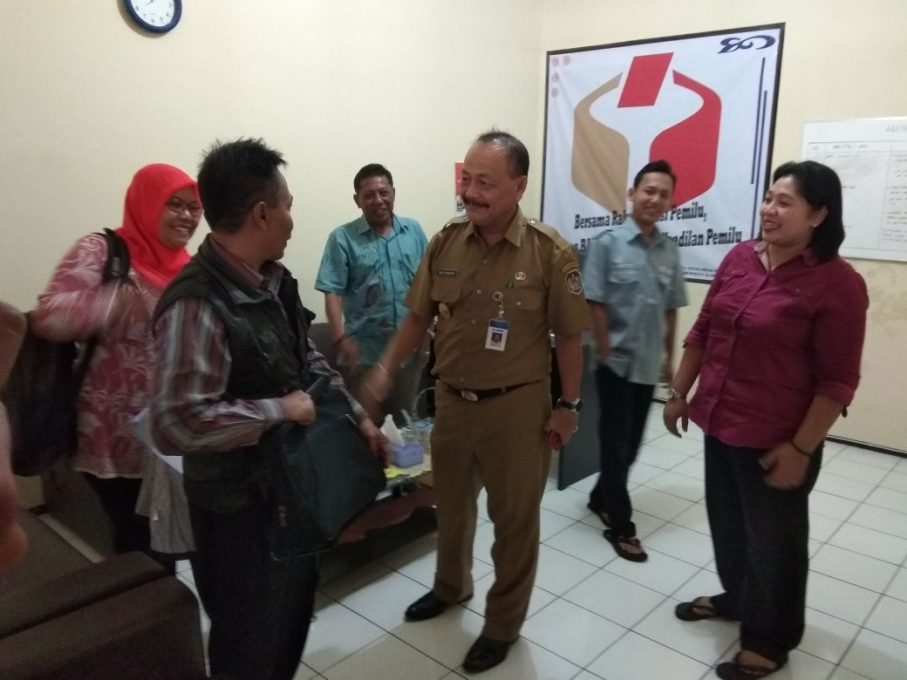 FOKUS JATENG-KARANGANYAR-Prijo Anggoro Budi Rahardjo, Pjs Bupati Karanganyar, melakukan konsolidasi dan silaturahmi ke Kantor Panwaslu dan KPU Karanganyar, Senin siang 5 Maret 2018. Prijo Anggoro selaku orang nomor satu di Pemkab Karanganyar itu datang ke kantor Panwaslu dan KPU Karanganyar tanpa diundang.