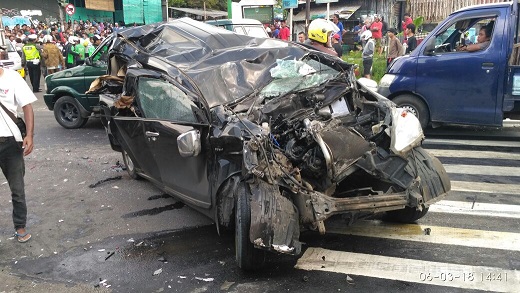 FOKUS JATENG-SOLO-Kecelakaan maut yang terjadi di simpang empat Genengan, Kelurahan Mojosongo, Kecamatan Jebres, Solo, diduga lantaran truk tronton mengalami rem blong. Sehingga mengamuk dua mobil dan tiga motor di depannya. Peristiwa nahas yang terjadi Selasa 6 Maret 2018 ini mengakibatkan tiga pengendara tewas.