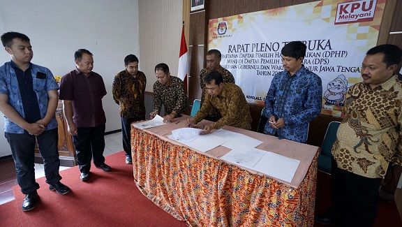 Rapat pleno dihadiri seluruh komisioner dan staf KPU Boyolali, Ketua Panwaslu, pihak kepolisian, jajaran Dinas Kependudukan dan Pencatatan Sipil (Dispendukcapil) Kabupaten Boyolali, dan tim sukses dari pasangan calon nomor Gubernur/Wakil Gubernur, serta PPK se-Kabupaten Boyolali.