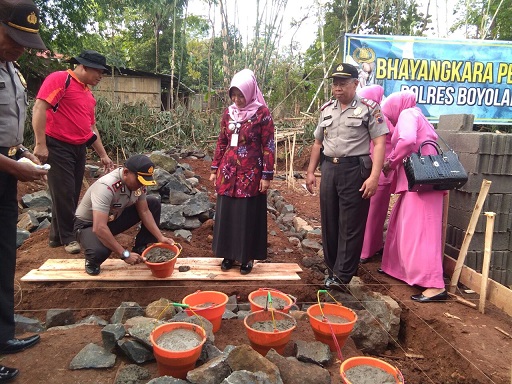 Prosesi peletakan batu pertama dipimpin oleh Wakapolres Boyolali Kompol Zulfikar Iskandar. Pada kesempatan itu juga dihadiri jajaran Polres Boyolali, Polsek Ampel, dan Camat Ampel Siti Askariyah. Rumah yang dibangun ini berukuran 6×9 meter berdinding batako dan fondasi batu kali. “Sesuai rencana dilakukan dalam waktu 22 hari. Diharapkan selesai tepat waktu,” harap wakapolres.