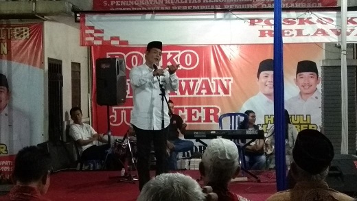FOKUS JATENG-KARANGANYAR-Calon Bupati Karanganyar Juliatmono melakukan serangkaian kunjungan di wilayah Colomadu, Karanganyar, Senin 26 Maret 2018. Dalam kunjungan yang berlangsung hingga malam hari, calon bupati yang diusung 7 partai politik ini meresmikan Posko Pemenangan Relawan Jupiter Baturan.