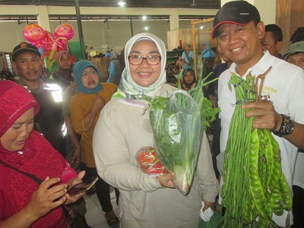 Bupati Yuni mengajak kepala dinas, camat, dan PNS mulai menggerakan belanja di pasar tradisional. Jadi momen ini tidak hanya great ceremoni saja, tapi setiap hari harus belanja di pasar tradisional. Sehingga ekonomi kerakyatan tidak kalah bersaing dengan mal dan toko modern yang terus menjamur.