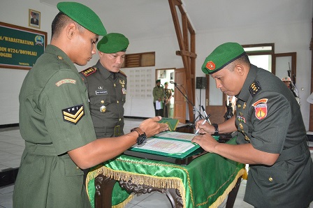 Sekitar pukul 10.00 WIB, Kolonel Inf Widi Prasetijono selaku Komandan Korem (Danrem) 074/ Warastratama memimpin sertijab tersebut. Dalam sambutanya, Danrem mengatakan, selamat datang dan selamat bertugas kepada Dandim 0724/Boyolali yang baru dan semoga dapat mempertahankan dan menambah prestasi yang sudah ada sebelumnya.