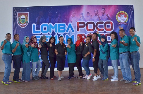 FOKUS JATENG-BOYOLALI-Federasi Olahraga Rekreasi Masyarakat Indonesia (FORMI) Kabupaten Boyolali selenggarakan lomba senam poco poco di Balai Sidang Mahesa, Kamis 12 April 2018. Perlombaan yang diikuti peserta sejumlah 25 kelompok dari sanggar dan instansi di lingkungan Pemkab Boyolali, berpartisipasi dalam lomba senam yang berasal dari daerah Sulawesi Utara ini.