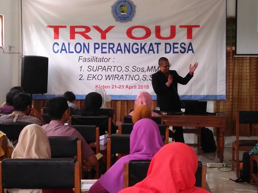 FOKUS JATENG-KLATEN-Tes seleksi calon perangkat desa di Kabupaten Klaten dijadwalkan secara serentak pada Minggu 29 April 2018. Sedikitnya 425 calon perangkat desa mulai ancang-ancang untuk membekali diri dengan cara mengikuti try out yang diadakan oleh Sekolah Tinggi Ilmu Administrasi (STIA Madani) Klaten.