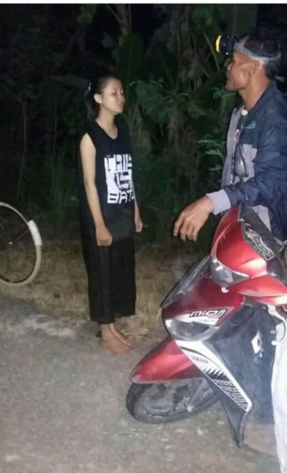Sontak saja, kejadian ini membikin gempar warga sekitar. Gadis cantik tersebut diketahui berpakaian warna hitam dan mengenakan rok panjang warna hitam. Lantas rambut lurus di bawah bahu, agak kurus, dan mata agak sipit.