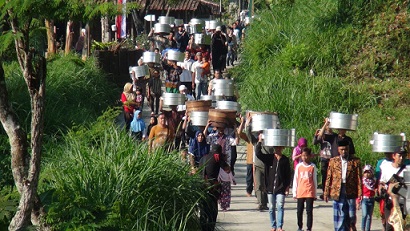FOKUS JATENG-BOYOLALI-Warga di lereng Gunung Merapi-Merbabu wilayah Boyolali, Jawa Tengah, tengah melangsungkan tradisi Sadranan jelang Ramadan. Seiring berkembangnya waktu, tradisi ini menjadi destinasi Desa Wisata. Seperti yang terlihat di Dusun Dangean, Desa Gedangan, Kecamatan Cepogo, Boyolali, ini.