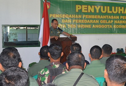 Hal ini disampaikan dandim di sela kegiatan penyulukan Pencegahan Pemberantasan Penyalahgunaan dan Peredaran Gelap Narkoba (P4GN) di Makodim setempat Selasa 15 Mei 2018. Acara ini diikuti anggota TNI. “Aksi terorisme yang baru saja terjadi. Kita semua harus selalu waspada dimanapun berada,” tegasnya.