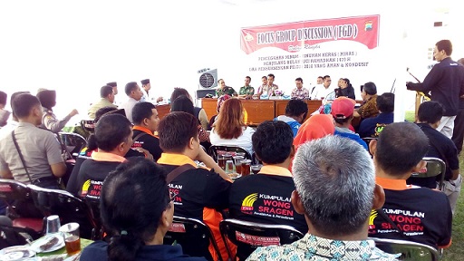 FOKUS JATENG-SRAGEN-Polres Sragen bersama forum komunikasi pimpinan daerah (forkopimda) dan admin komunitas mesdsos Sragen menggelar focus group discussion (FGD) di lapangan mapolres setempat Selasa 15 Mei 2018. FGD kali ini membahas tentang maraknya peredaran minuman keras (miras) dan narkoba di wilayah Sragen.