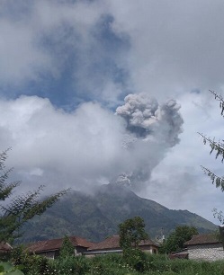 FOKUS JATENG-BOYOLALI-Gunung Merapi kembali memunculkan asap tebal membumbung tinggi sekitar pukul 10.00 WIB Senin 21 Mei 2018. Arah material vulkanis ke barat atau wilayah Magelang. Gempa freatik ini terjadi dua kali, yakni sekitar pukul 01.25 WIB dan pukul 09.56 WIB.