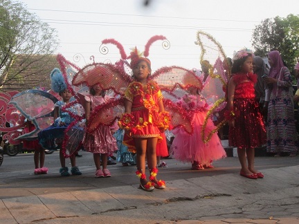 Dua bocah menampilkan kostum karnaval di acara ngabuburit Kamis 31 Mei 2018. (credit-Huriyanto/Fokusjateng.com)