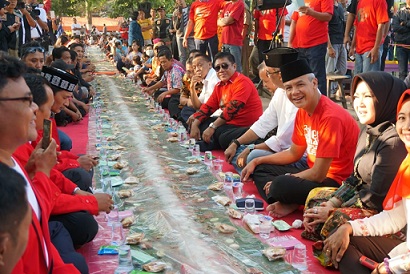 Gubernur yang populer dengan slogan Mboten Korupsi, Mboten Ngapusi itu turut makan bersama dalam Kembul Bujana.