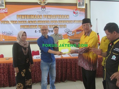 FOKUS JATENG-SRAGEN-Partai Golkar Sragen mendatangi kantor KPU Kabupaten Sragen Selasa pagi 17 Juli 2018. Para pengurus tersebut mendaftarkan nama-nama bakal calon legislatif (caleg) yang akan bertarung pada Pileg 2019.