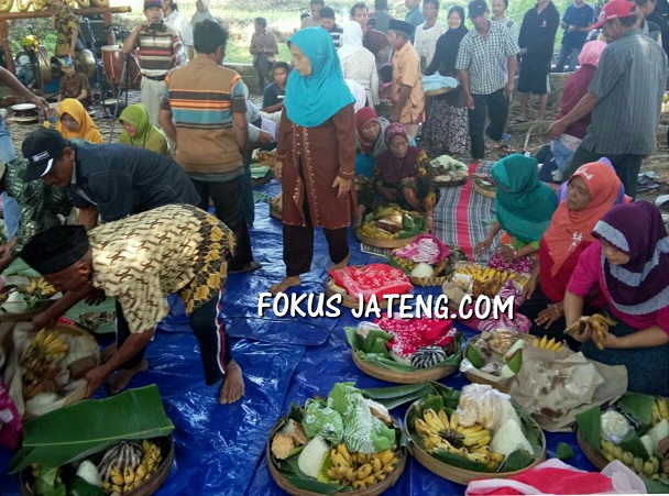 Ratusan warga Pengkol tumpah ruah di punden Waringin berupa pohon beringin kembar yang dikenal sebagai sumber cikal bakal warga di Dusun Pengkol.