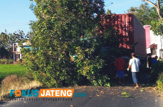 Kejadian ini bermula saat truk kontainer bernopol H 1866 DD yang dikemudikan Deni (30), melaju dari arah selatan (Boyolali) ke utara (Sambi). Namun laju sopir warga Tanjungmas, Semarang ini terhenti. Sebab, bagian kepala truk tertimpa dahan pohon yang patah karena hempasan angin.