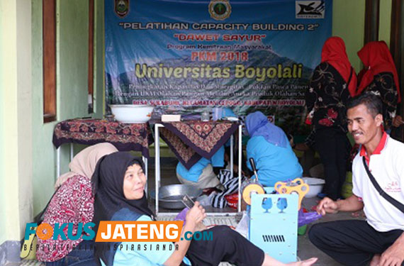 “Kegiatan ini dilakukan mengingat minimnya pengetahun dan teknologi dalam mengolah hasil pertanian, khususunya petani sayur. Untuk itu Universitas Boyolali memberikan sejumlah pelatihan kepada gabungan kelompok tani dan UKM olahan pangan di Desa Sukabumi, Cepogo, Boyolali, Jawa Tengah,” kata Ketua Tim PKM UBY Ir. Sigit Muryanto, dalam rilis yang diterima redaksi Jumat, 3 Agustus 2018.