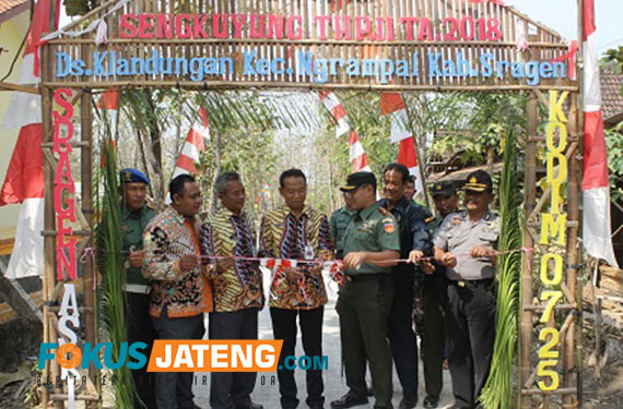 FOKUS JATENG – SRAGEN – Pelaksanaan TNI Manunggal Membangun Desa (TMMD) Sengkuyung II Tahun 2018 Desa Klandungan, Kecamatan Ngrampal, Sragen, Jawa Tengah, resmi ditutup Rabu 8 Agustus 2018.
