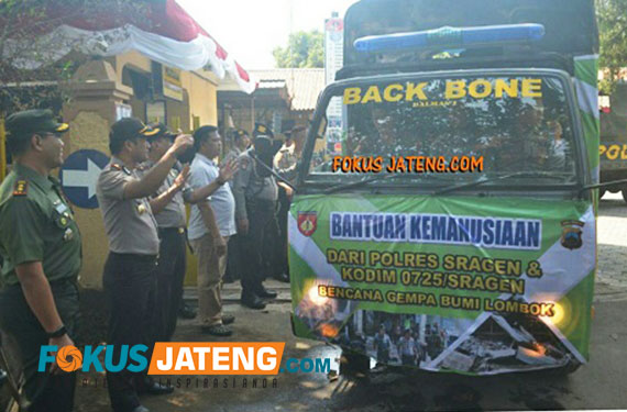 FOKUS JATENG – SRAGEN – Gempabumi yang melanda Lombok, Nusa Tenggara Barat (NTB) terus mendapat perhatian dari berbagai kalangan di Tanah Air. Seperti dari Kodim 0725/Sragen dan Polres Sragen ini. TNI/Polri yang bertugas di wilayah Sragen ini mengirim bantuan logistik ke lokasi bencana alam Kamis 9 Agustus 2018.