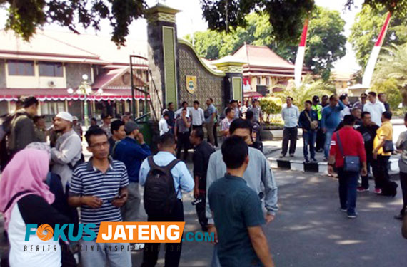 Aksi massa pecah di Alun-Alun Sasono Langen Putro Sragen, Senin pagi 13 Agustus 2018. Mereka datang dari peserta rekrtumen perangkat desa (perdes) yang kecewa dengan hasil rekrutmen. Sebab mereka menduga sarat kecurangan.