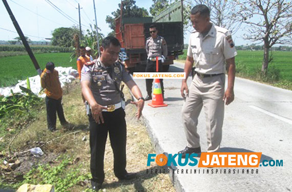 Kasatlantas Polres Sragen AKP Dani Permana Putra dan anggota olah TKP kecelakaan tunggal Rabu 15 Agustus 2018. (credit-Huriyanto/Fokusjateng.com)