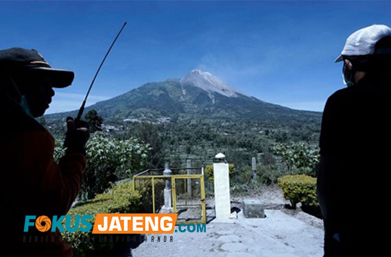 FOKUS JATENG – BOYOLALI – Puncak Gunung Merapi muncul kubah lava baru. Untuk mengantisipasi erupsi, warga yang bertempat tinggal di kawasan rawan bencana (KRB) III meningkatkan kewaspadaan. Meski waspada, namun warga tetap beraktivitas normal Senin 20 Agustus 2018.