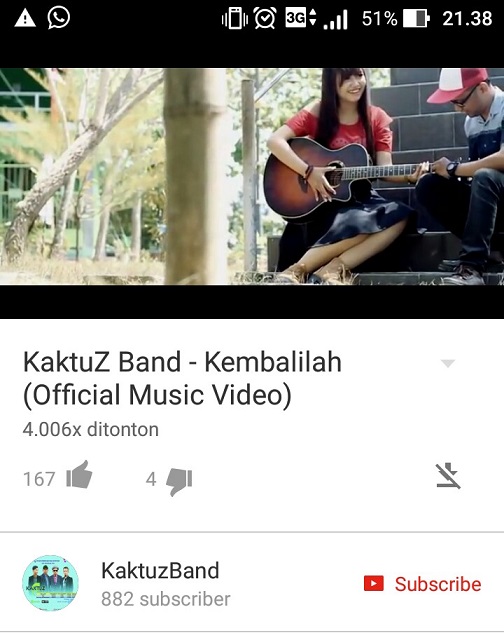 Group band yang terdiri dari Anwar (vokalis), Cholis (gitar), Agas (gitar bass), dan Nanang (drummer), ini mencoba meneruskan kesuksesan dengan lagu yang baru di-launching tersebut langsung diunggah di Youtube dengan channel “kaktuzband” pada 10 Agustus 2018 lalu, Kini sudah ditonton sebanyak 4.006 kali dan Like 167, serta 135 komentar.