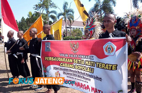FOKUS JATENG – BOYOLALI – Ribuan pesilat Persaudaraan Setia Hati Terate (PSHT) Cabang Boyolali mengikuti gerak jalan simpatik, Minggu 26 Agustus 2018. Selain memperingati HUT Kemerdekaan RI ke-73, gerak jalan itu juga sebagai pernyataan dukungan pelaksanaan Pilpres dan Pileg 2019 damai.