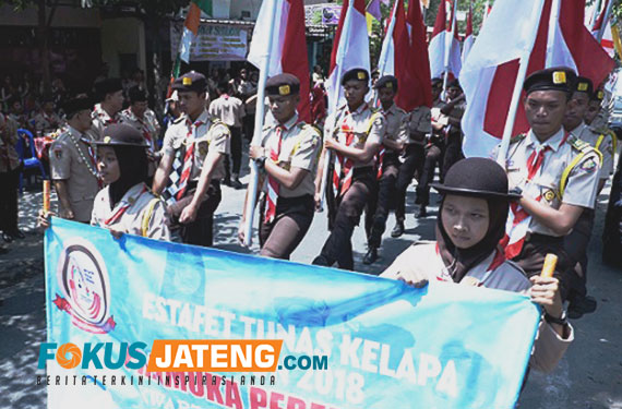 FOKUS JATENG – BOYOLALI – Pramuka Kwartir Cabang (Kwarcab) Boyolali menerima Estafet Tunas Kelapa (ETK) dari Kwarcab Surakarta di Desa Sawahan, Kecamatan Ngemplak pada Senin 27 Agustus 2018. Kegiatan ini merupakan rangkaian dari Hari Ulang Tahun (HUT) ke-57 Pramuka selain kegiatan perkemahan, upacara kebesaran, maupun renungan malam.