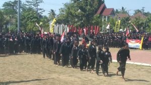 Warga PSHT Cabang Boyolali saat mengikuti apel di Alun-Alun Kidul Pemkab Boyolali. (credit-Yulianto/Fokusjateng.com)