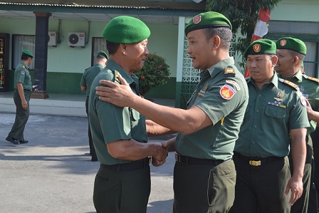 Komandan Kodim (Dandim) 0724/Boyolali Letkol Kav Herman Taryman SIP, MH yang di wakili oleh Kepala Staf Kodim (Kasdim) 0724/Boyolali Mayor Inf Handoko Setyobudi ,SE menerima laporan purna tugas anggota Kodim 0724/Boyolali Pelda Suwdi anggota Koramil 4 Teras yang akan memasuki MPP.
