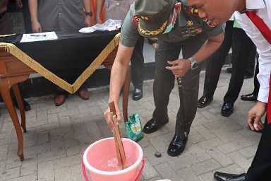 Pemusnahan dihadiri jajaran Forkopimda Boyolali. Pemusnahan dilakukan dengan cara melarutkan ke dalam air lalu dicampur deterjen bubuk dan solar. Agar tercampur rata, larutan diaduk dalam sebuah ember.