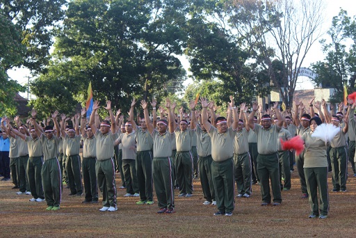 FOKUS JATENG-ADI SOEMARMO-Sebanyak 3.500 anggota TNI, baik TNI AD dan TNI AU, di bawah jajaran Korem 074/Warastratama turut serta mendukung pemecahan rekor MURI Senam Gemu Famire. Kegiatan ini digagas oleh Panglima TNI dalam rangka HUT TNI yang ke-73.