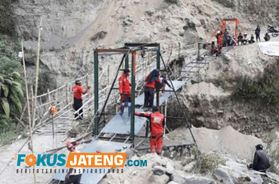 FOKUS JATENG – BOYOLALI – Pembangunan jembatan gantung di Dusun Bangunsari, Desa Klakah, Kecamatan Selo, Boyolali, Jawa Tengah, hampir selesai. Proyek jembatan yang dibangun swadaya masyarakat dengan dibantu Vertical Rescue Indonesia (VRI) diagendakan kelar pada Sabtu 15 September 2018.