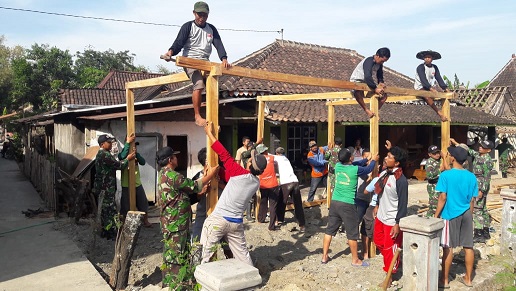 FOKUS JATENG-SRAGEN-Terlihat senyum bahagia terpancar dari wajah Nasiyah (65), janda keluarga miskin di Dukuh Salam RT 13, Desa Saren, Kecamatan Kalijambe, Sragen, Jawa Tengah, Senin 17 September 2018. Pasalnya, ibu tiga anak ini mendapat bantuan bedah rumah dari Koramil 18/Kalijambe bersama Relawan Akademi Kepedulian Sragen (AKS).