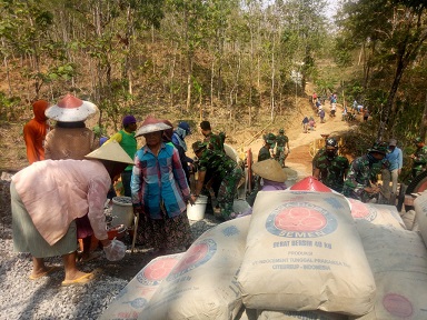 Namun dalam pelaksanaan hari 3 ini agak sedikit berbeda. Sebab, para perempuan paruh baya tetap semangat mengecor jalan bersama tim satgas.