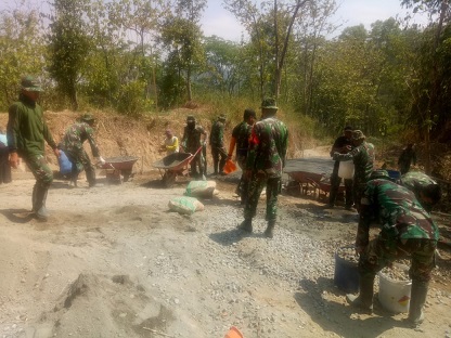 Keberadaan babinsa memang sangat dibutuhkan oleh tim satgas dikarenakan sebagai monitoring kegiatan. “Selain itu juga sebagai penghubung bilamana ada kendala di lapangan seperti kurangnya bahan material,” tambah Lettu Kav Mujiono, yang didaulat sebagai Pawas pengecoran jalan.
