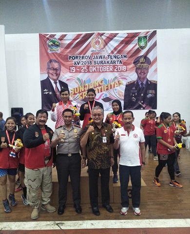 FOKUS JATENG-BOYOLALI-Kejuaraan Pekan Olahraga Provinsi (Porprov) Jawa Tengah XV tahun 2018 memasuki babal final Rabu 24 Oktober 2018. Kegiatan yang berlangsung pukul 09.00 WIB sampai 19.25 WIB ini bertempat di Gedung Balai Sidang Mahesa Jalan Kates No 3 Kelurahan Siswodipuran, Kecamatan Boyolali, Boyolali.