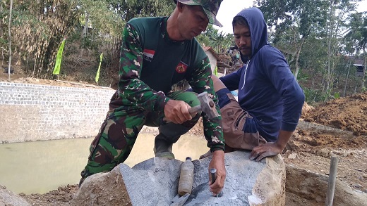 FOKUS JATENG-SRAGEN-Batu merupakan salah satu bahan pokok yang digunakan dalam pembangunan embung pada TMMD Reguler ke-103 Kodim 0725/Sragen. Tidak hanya warga Desa Sukorejo, Kecamatan Sambirejo, Sragen, Jawa Tengah, saja yang bisa memecahkan batu. Ternyata anggota Satgas TMMD pun juga tak kalah mahirnya.