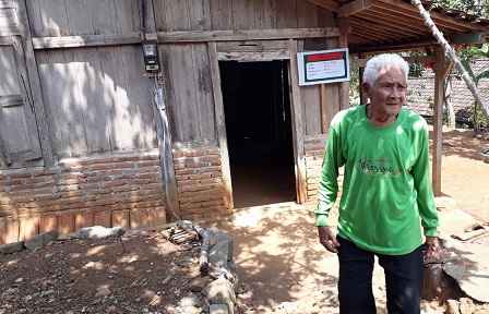 FOKUS JATENG-SRAGEN-Pasir datang hati Mbah Parto Wiyono (82), warga Dukuh Pondok, Desa Sukorejo, Kecamatan Sambirjo, Sragen, sangat senang Minggu 28 Oktober 2018. Rumah Mbah Parto, satu di antara rumah yang mendapat program rehab RTLH TMMD Kodim Sragen.