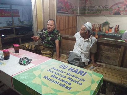 FOKUS JATENG-SRAGEN-Obrolan hangat tampak di warung soto Dukuh Segagan, Desa Sukorejo, Kecamatan Sambirejo, Sragen, tepatnya di depan Balai Desa Sukorejo Senin malam 29 Oktober 2018. Bincang-bincang ringan itu antara seorang prajurit TNI bersama salah satu warga.