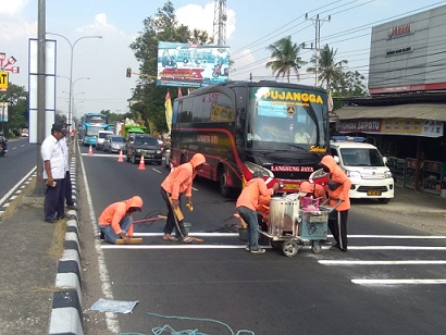 Upaya ini sebagai bentuk menekan angka kecelakaan di jalan nasional tersebut. Seperti yang terlihat pekerja lepas tengah memasang pita kejut rangkap tiga. Pemasangan ini di lajur utara untuk arus lalu lintas dari Semarang maupun dari arah Solo. “Pemasangan pita kejut ini bagian dari upaya mengantisipasi terjadinya kecelakaan di pertigaan Wika ini,” jelasSugiman, petugas PPK Sruwen- Kartasura- Prambanan jalan nasional.